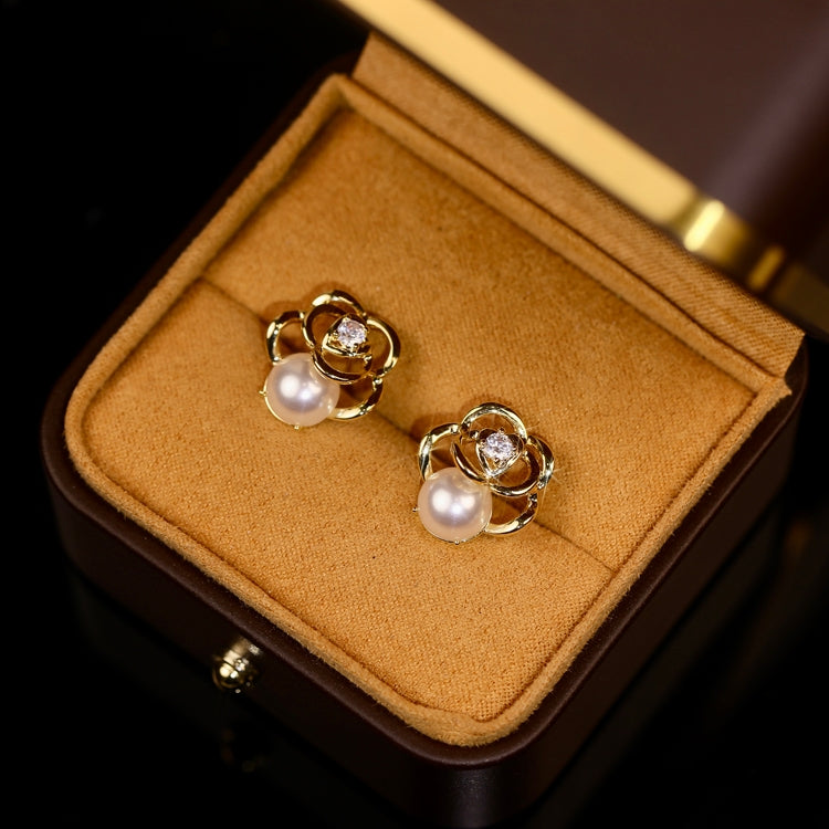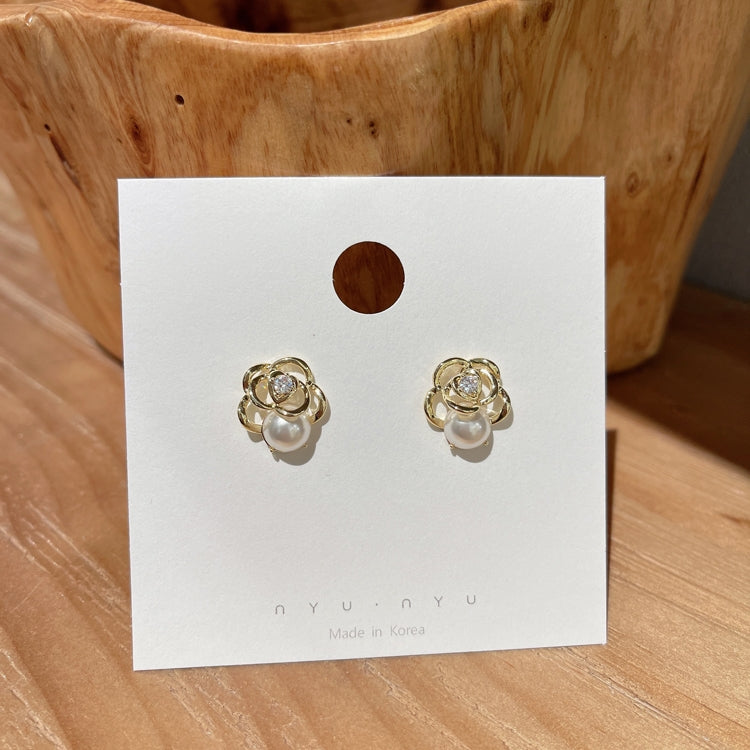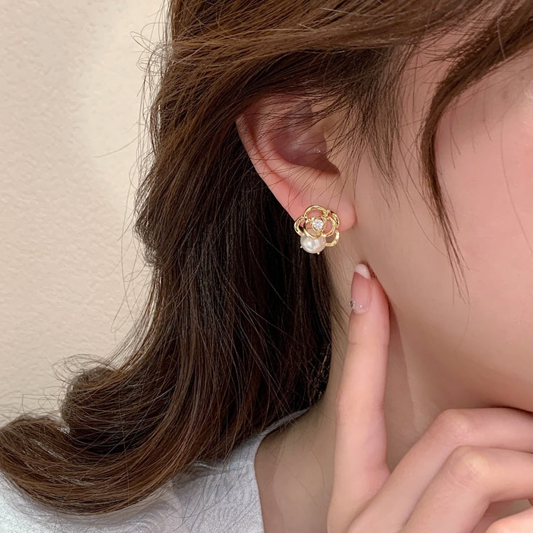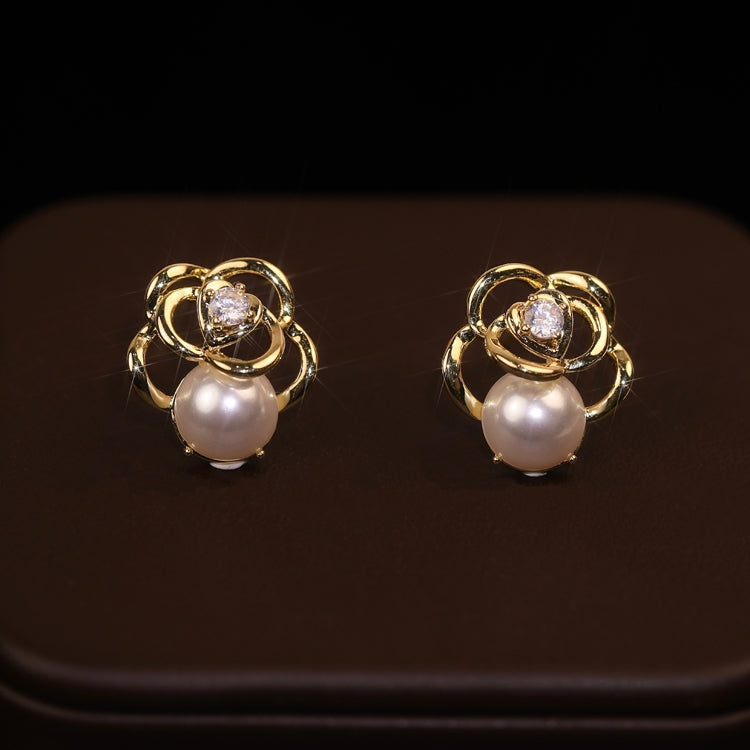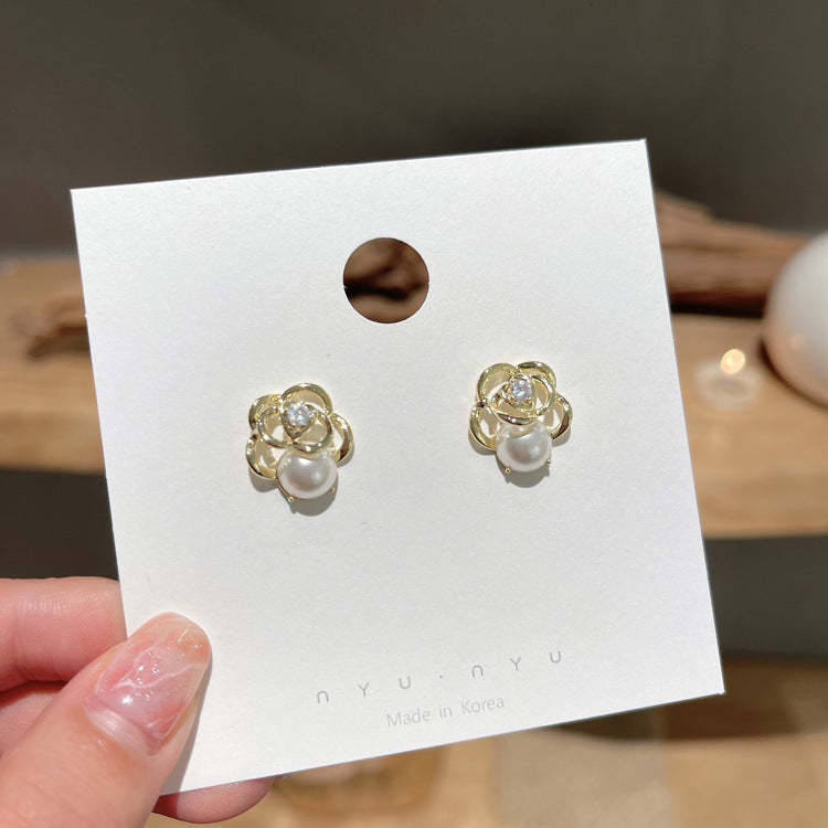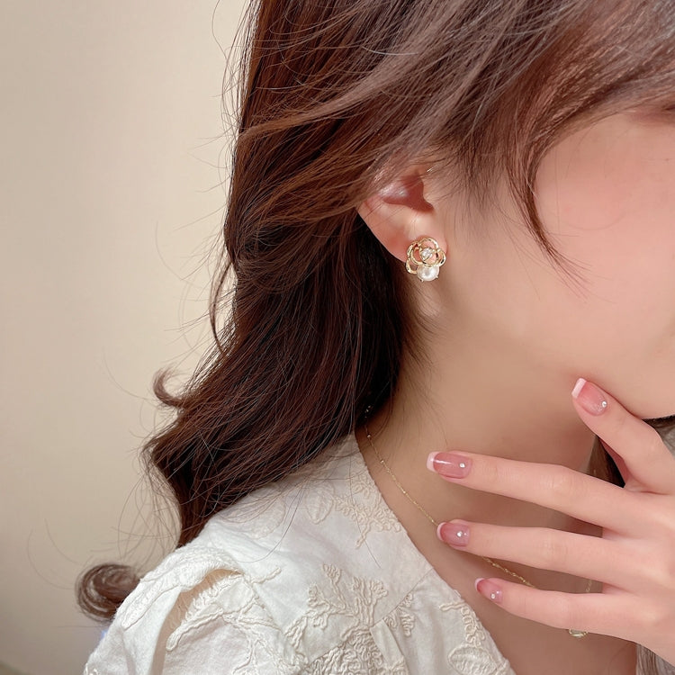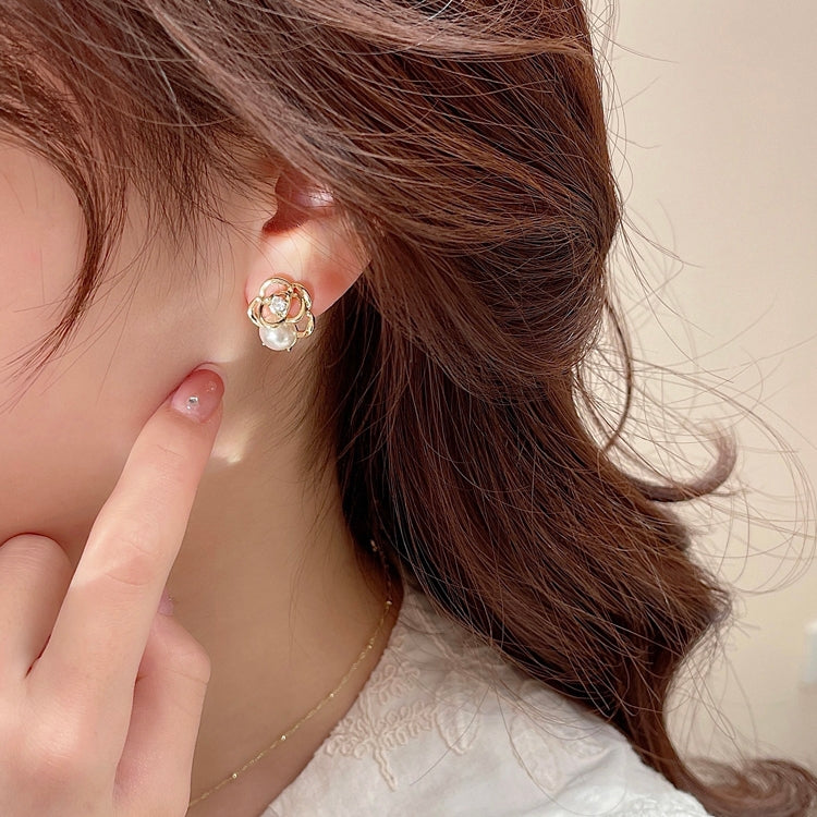 Women's Luxurious Camellia Pearl Alloy Stud Earrings - Retro Forest Style