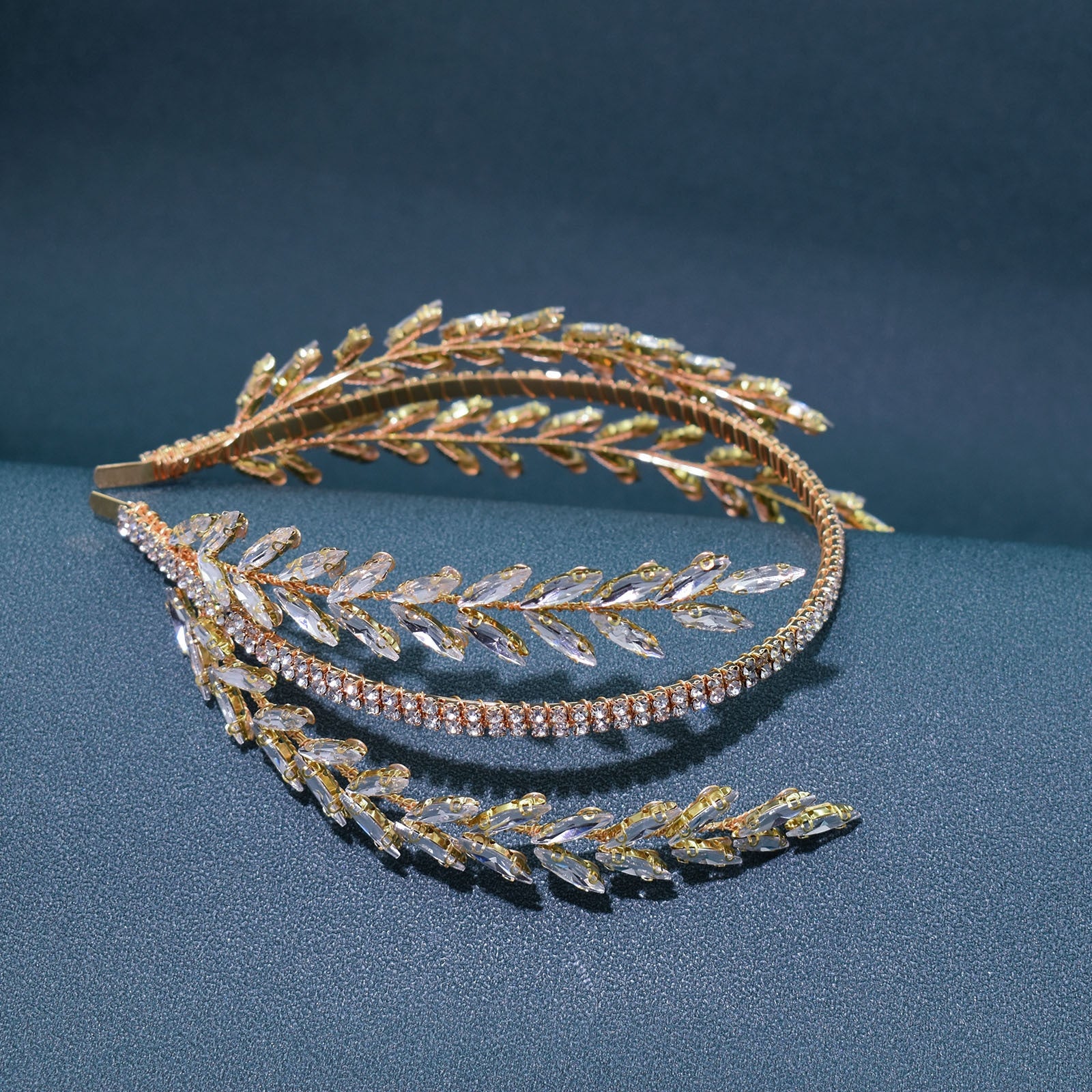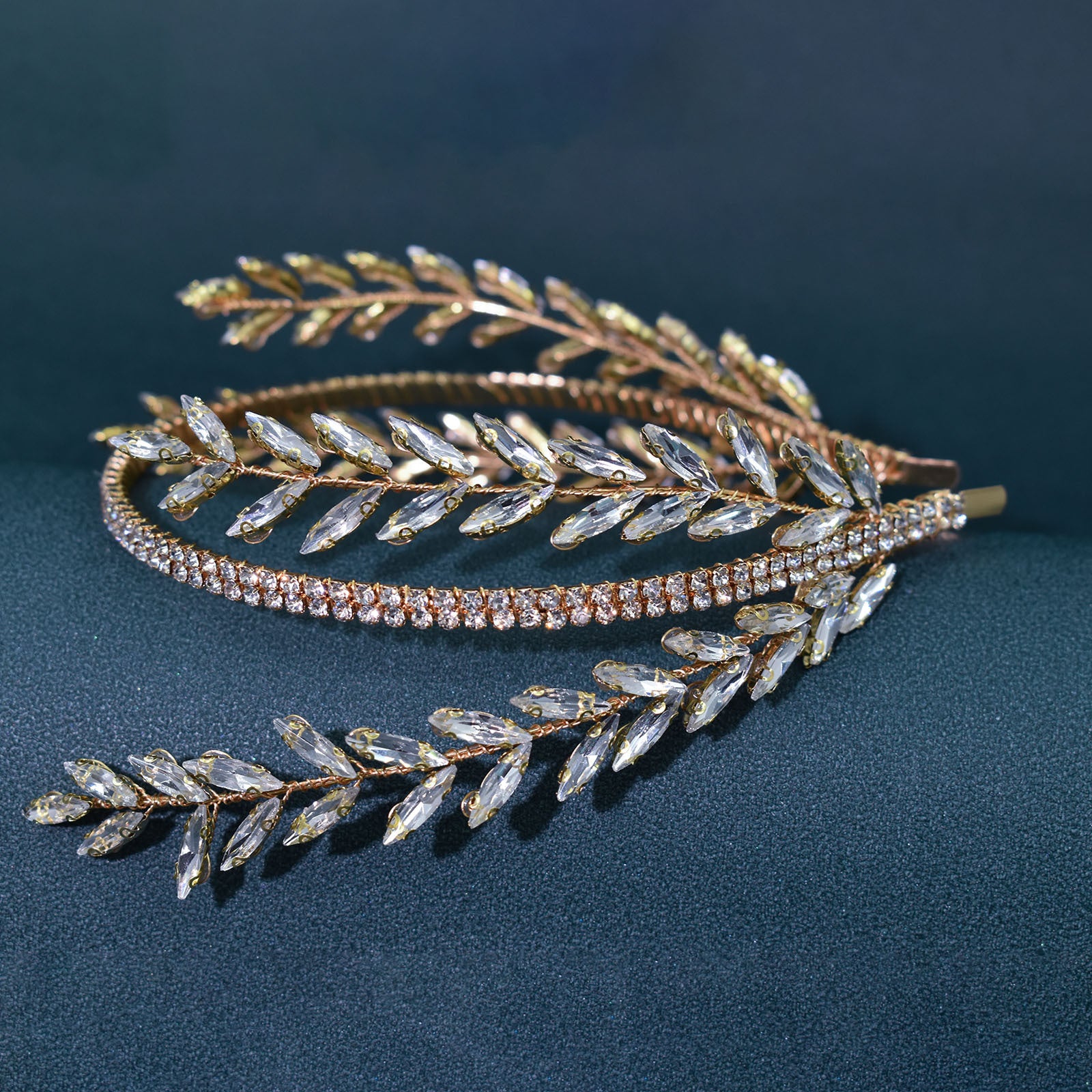 Women's Handmade Leaf Rhinestone Hair Band Bridal Headpiece