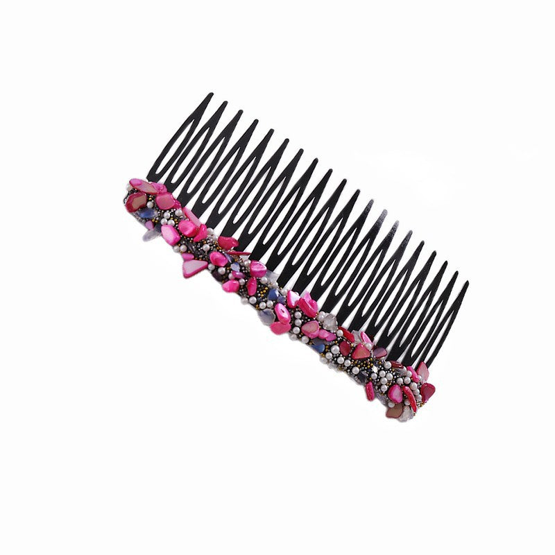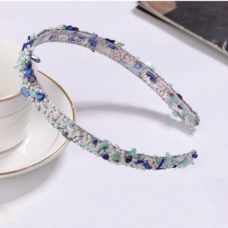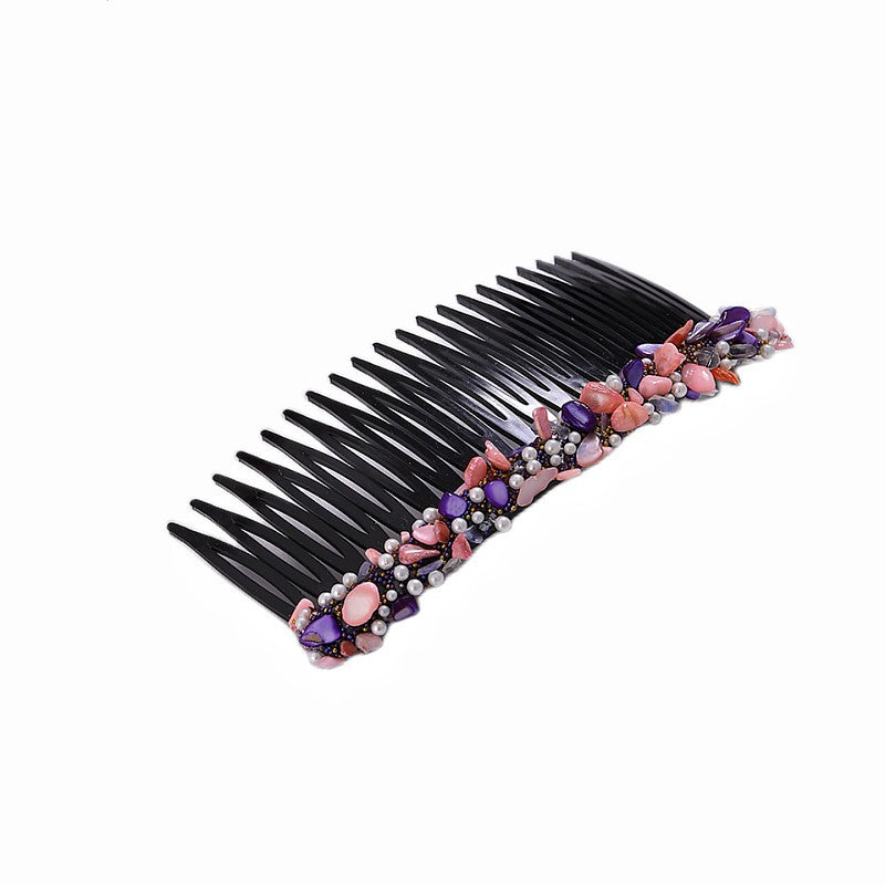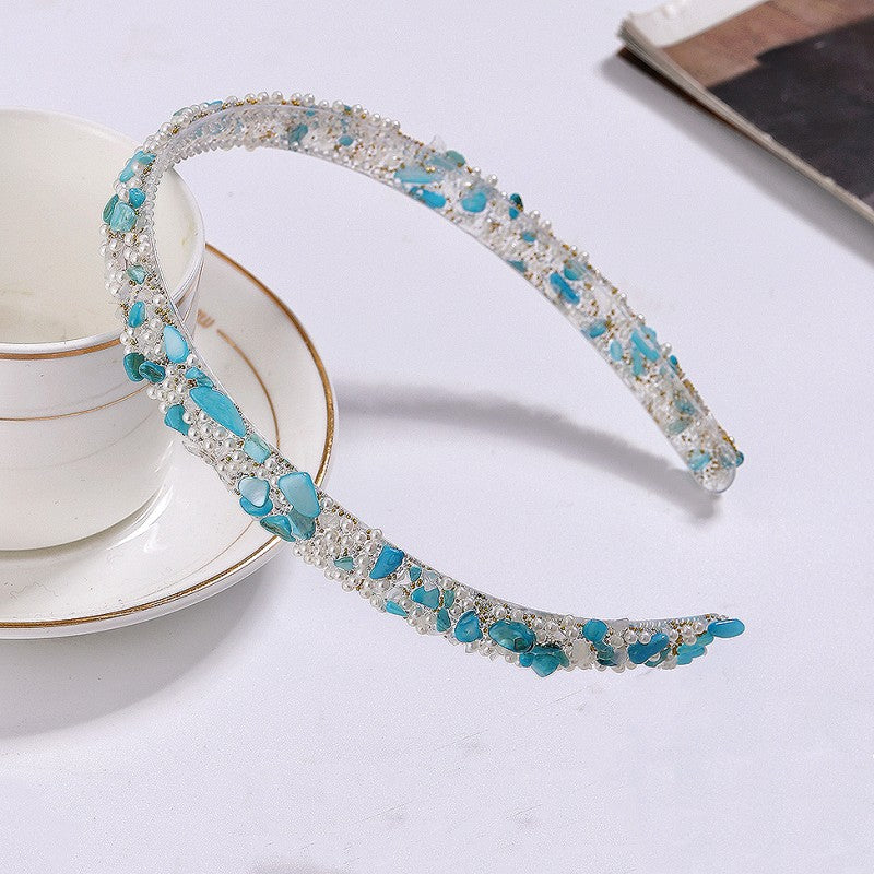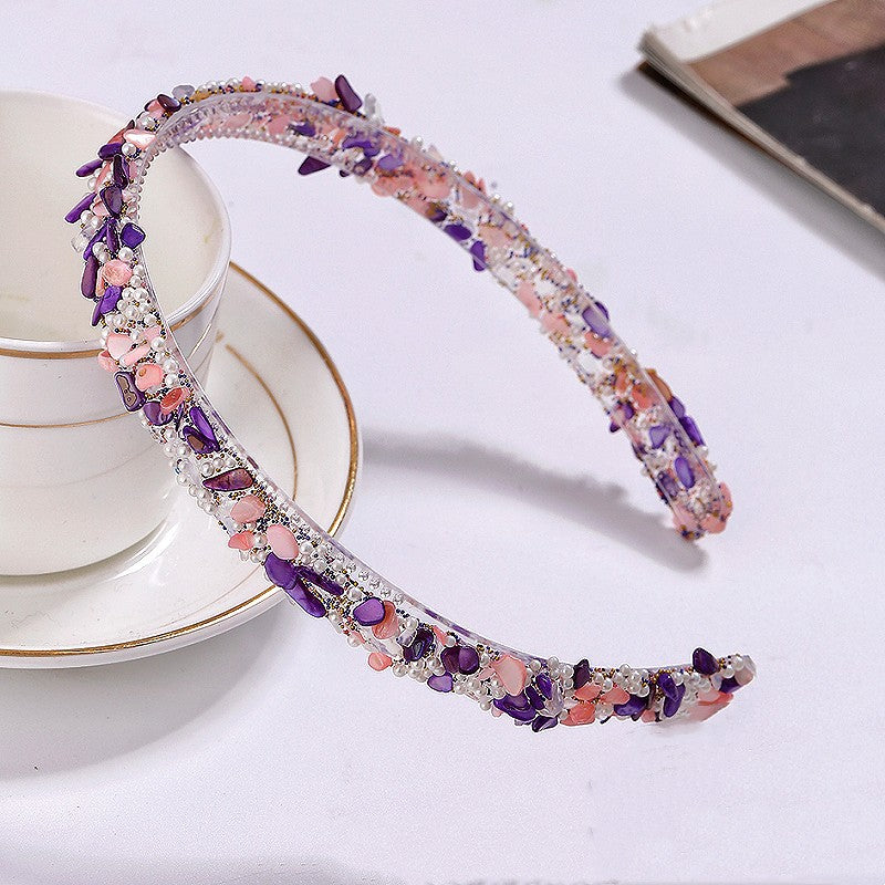 Women's Colorful Stone Hair Band with Artificial Pearl Inlay and Floral Plastic Hair Combs