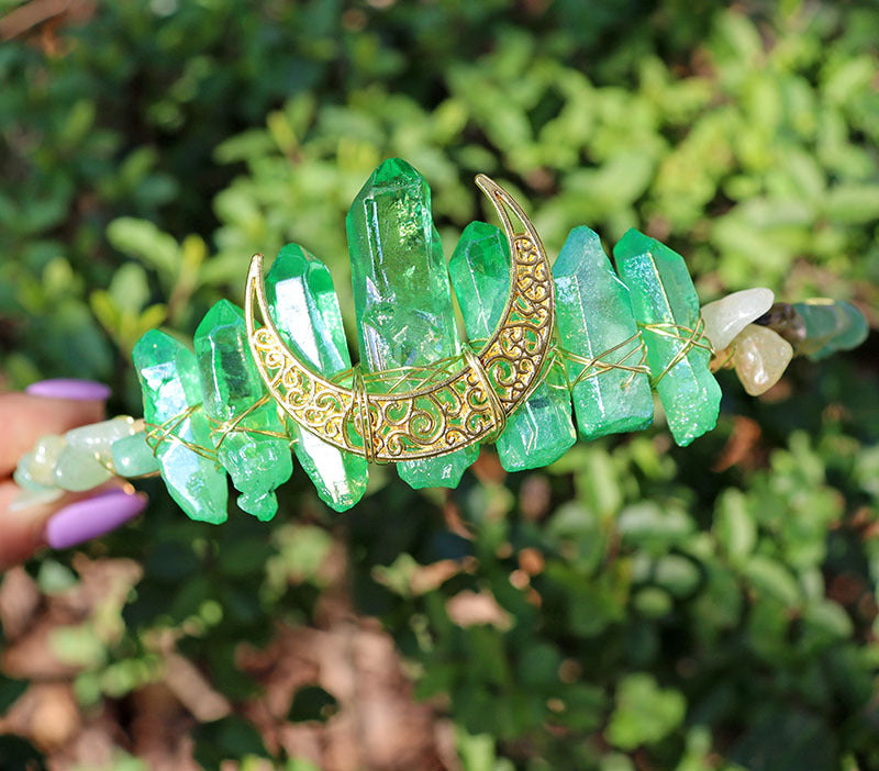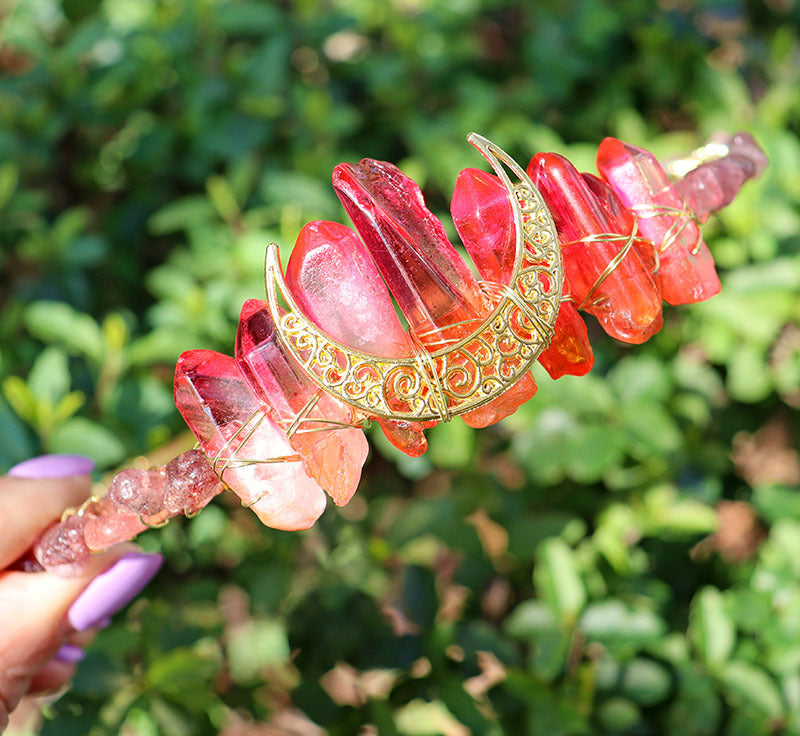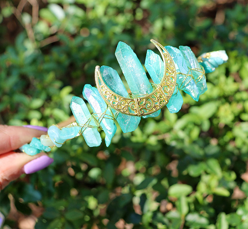Women's Geometric Moon Crystal Stone Handmade Bridal Hair Crown