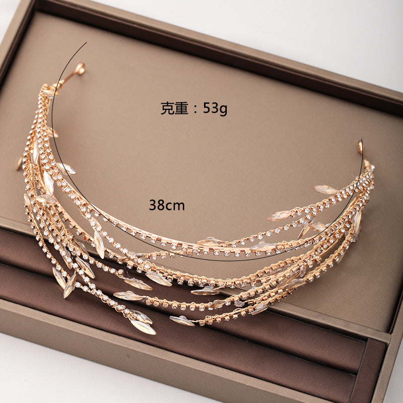 Women's Elegant Leaf Rhinestone Hairband - Gold Double Mesh Bridal Headpiece