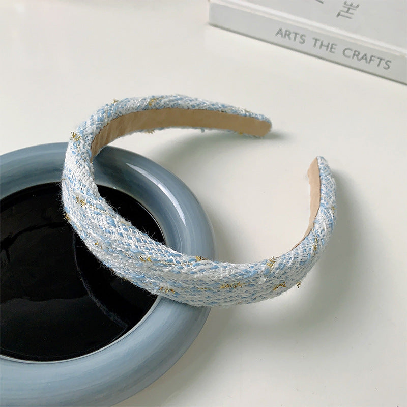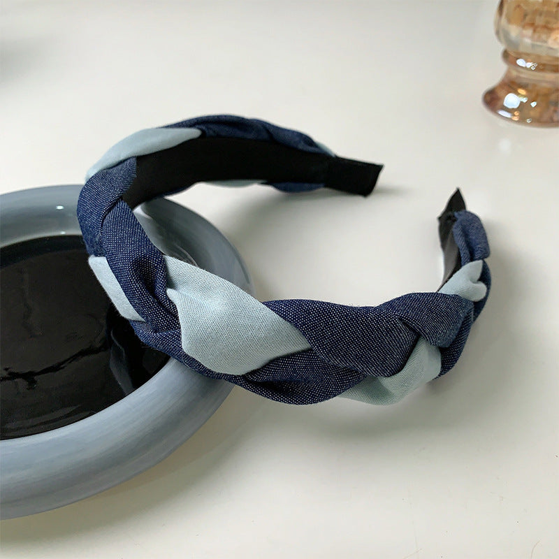 Women's Solid Color Denim Pearl Headband - Elegant Hair Accessory 2023